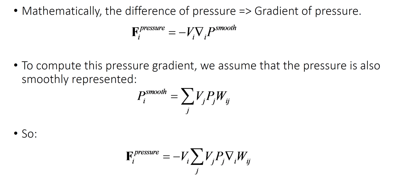 更严格的表述是压力等于压强的负梯度乘以粒子的体积,我们可以利用核函数的梯度来进行计算: