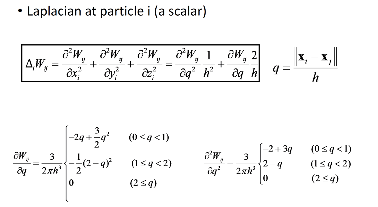 粘滞力可以通过对速度场求Laplacian来计算,我们同样对核函数来计算Laplacian: