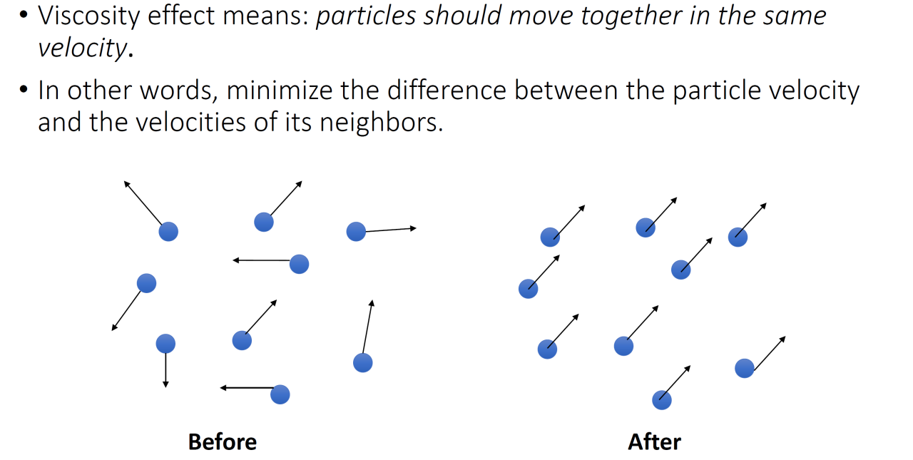最后一项粘滞力来自于流体自身的粘性,它会使粒子的速度趋于一致: