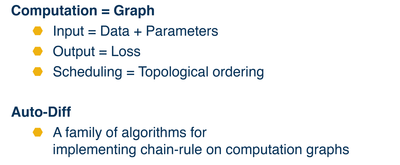 深度学习框架的本质就是大量事先定义好的计算节点,这样用户在定义模型时实际上定义了一个巨大的计算图。在模型训练时框架会调用反向传播算法来计算损失函数关于每个节点的导数,从而实现模型的更新。