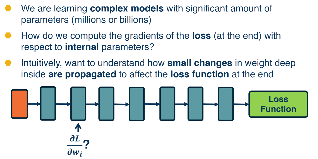 对于复杂的模型,我们还需要关注如何前向计算损失函数以及如何计算损失函数对于每一层参数的导数。