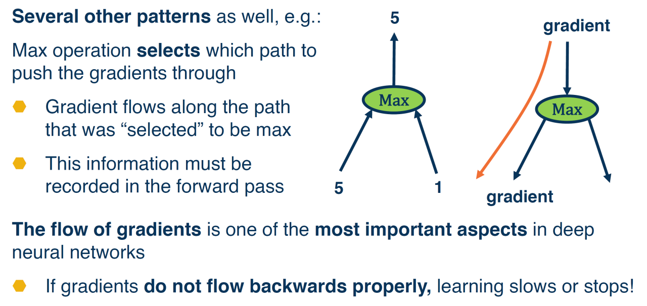 而对于最大值运算,导数只会传递给取最大值处的节点,其它节点接收到的导数为0。