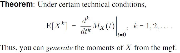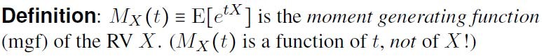 和期望有关的另一个函数是动量母函数(moment generating functions, MGF):