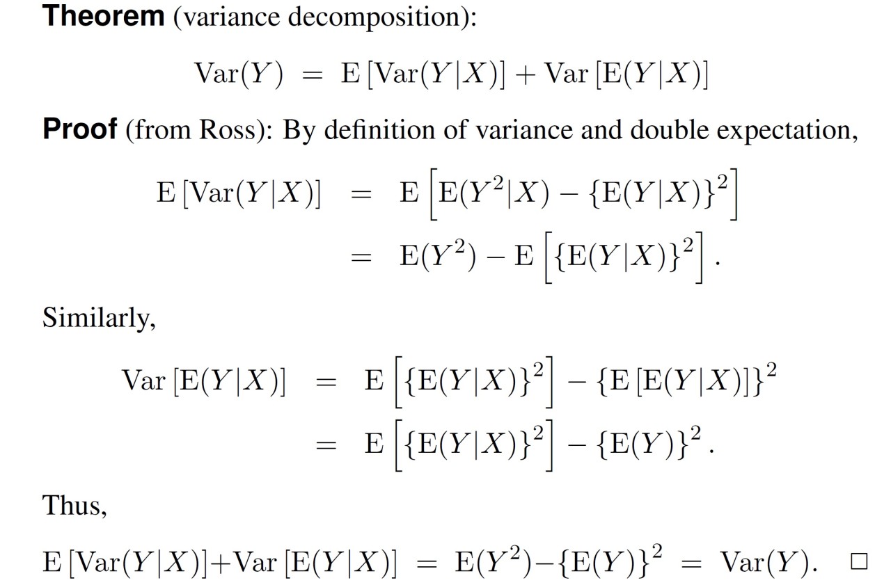 类似于全期望定理,我们也可以对$Y$的方差进行分解,称为全方差定理(law of total variance)。