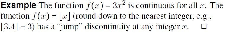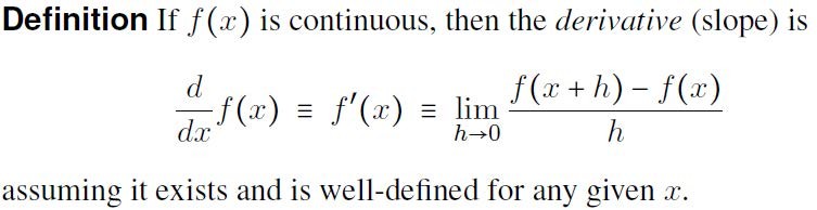 \[\sin (x) = \sum_{k=0}^\infty \frac{(-1)^k x^{2k + 1}}{(2k + 1)!}\] \[\cos (x) = \sum_{k=0}^\infty \frac{(-1)^k x^{2k}}{(2k)!}\] \[e^x = \sum_{k=0}^\infty \frac{x^k}{k!}\]另一个常用的工具是洛必达法则(L’Hospital’s rule),它指出当极限存在时可以利用函数的导数来代替函数值计算极限: