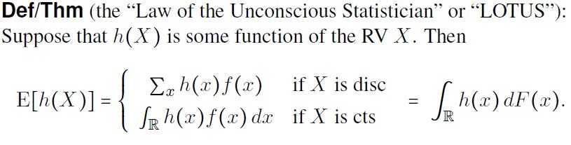 对于作用在随机变量上的函数,我们可以利用law of the unconscious statistician(LOTUS)来计算它的期望: