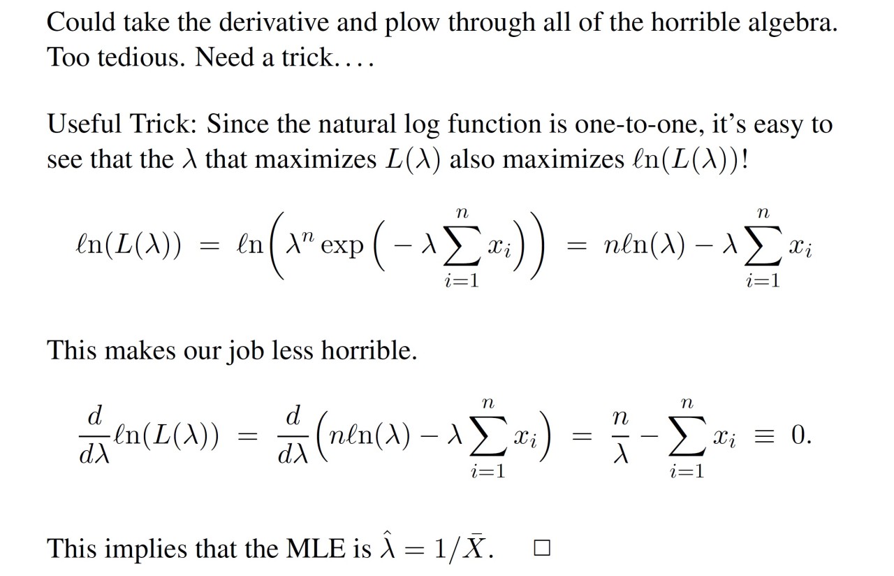 有时直接计算似然函数的极值比较困难,我们还可以通过对数函数来进行处理。