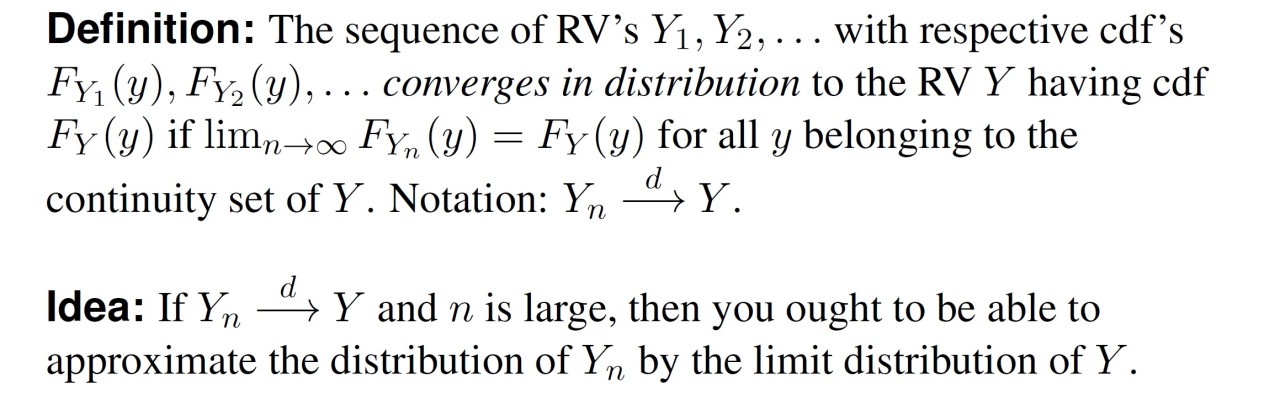 中心极限定理(central limit theorem, CLT)指出,当样本数目比较大的时候相互独立随机变量的均值经标准化后依分布收敛于标准正态分布。
