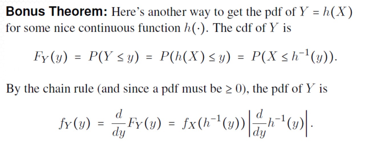 更进一步,如果$h$的性质比较好我们还可以利用链式法则来计算$h(X)$的PDF: