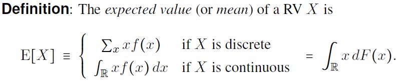 期望是随机变量的一个重要性质,离散和连续型随机变量的期望分别定义为: