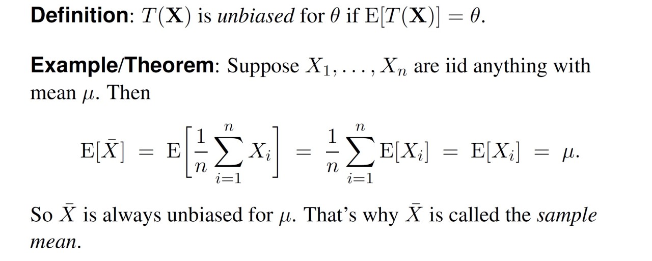 无偏估计(unbiased estimation)是指参数估计值的期望等于真实的参数。最常用的无偏估计是样本均值,显然对于独立同分布的样本其均值的期望等于样本分布的期望。