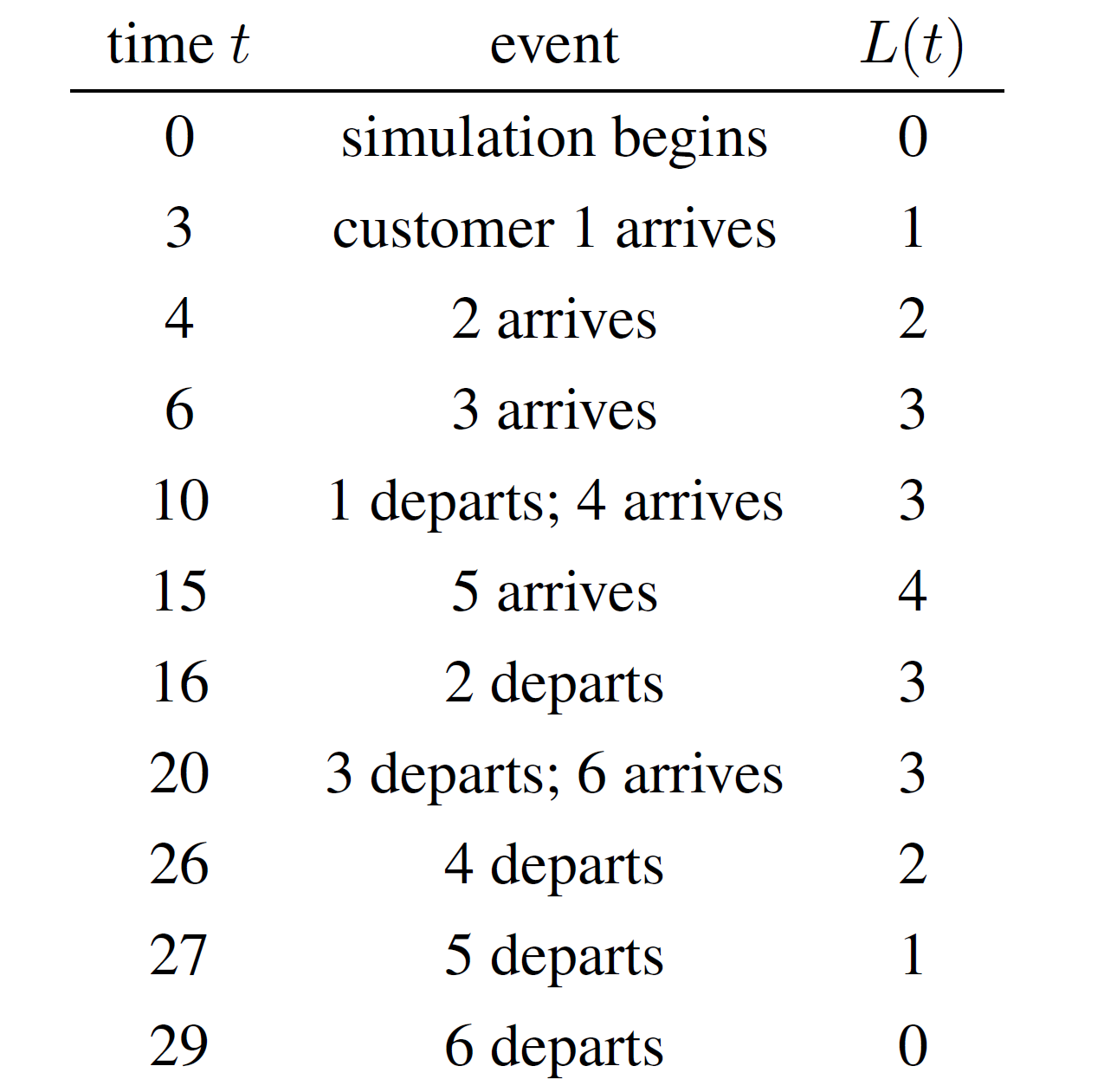 现实中的很多问题使用解析的方法来精确求解可能是比较困难的,在这种情况下使用模拟的方法可以帮助我们进行求解。首先考虑一个排队问题,假设有一个先入先出(FIFO)的队列,我们引入一些记号来方便描述: