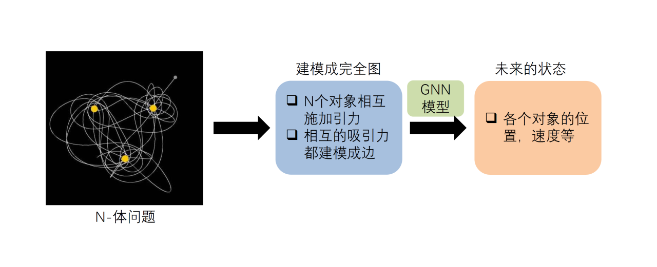 显然我们可以把N-body系统建模成一个全连接图,然后利用图神经网络来预测每个节点(对象)的运动状态。