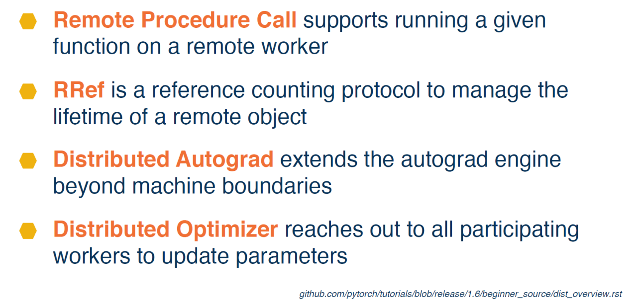 在一些更复杂的场景中可能在不同的机器上都有不同的模型(组件),此时就需要使用RPC来进行训练。