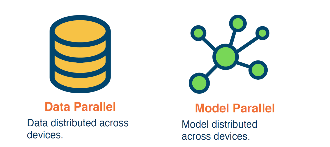 在生产环境中有时需要通过并行的方式来训练模型,这里首先对并行的模式进行区分。模型相同但数据分布在不同设备上的情况称为data parallel,而模型自身比较大必须分配到不同设备上的情况则称为model parallel。根据运行设备的数量还可以对它们继续细分。