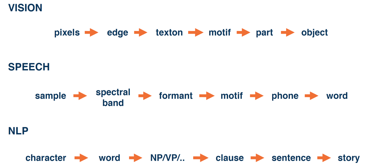 深度学习的一个特点在于它具有结构化特征的偏好(bias)。以图像识别为例,网络会对浅层的图像特征进行组合逐渐学习到高层的语义特征。