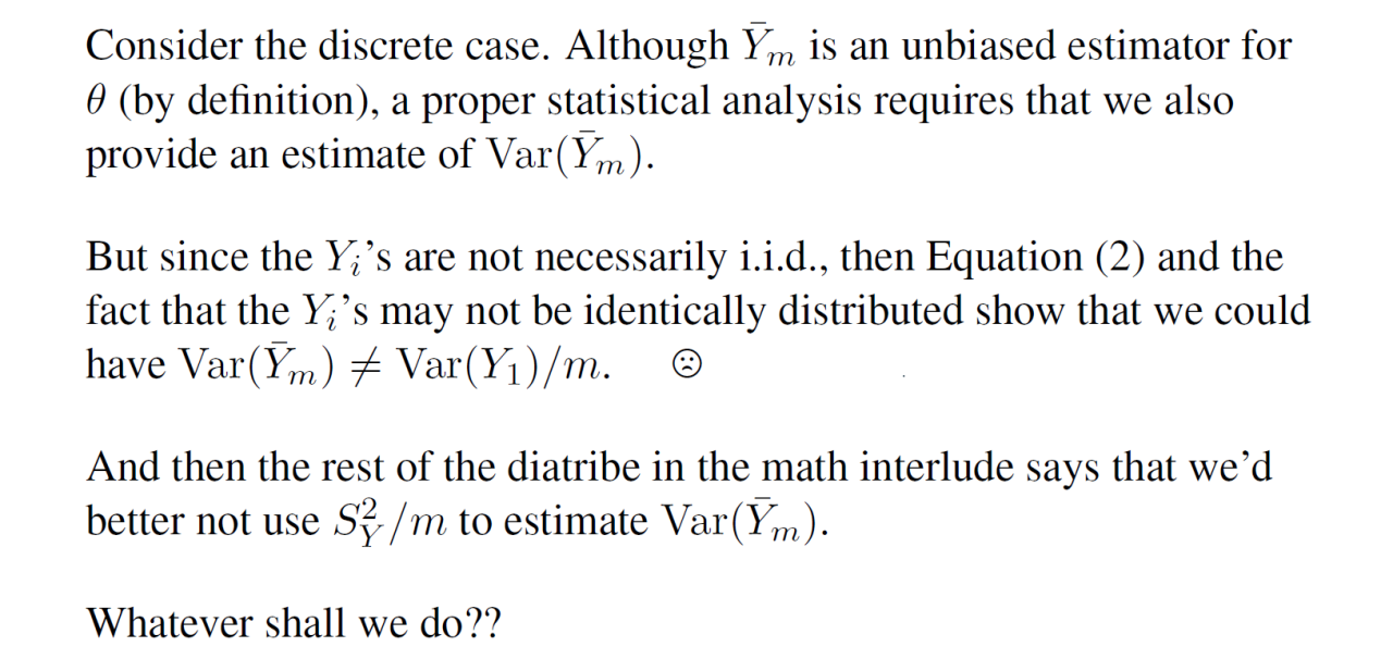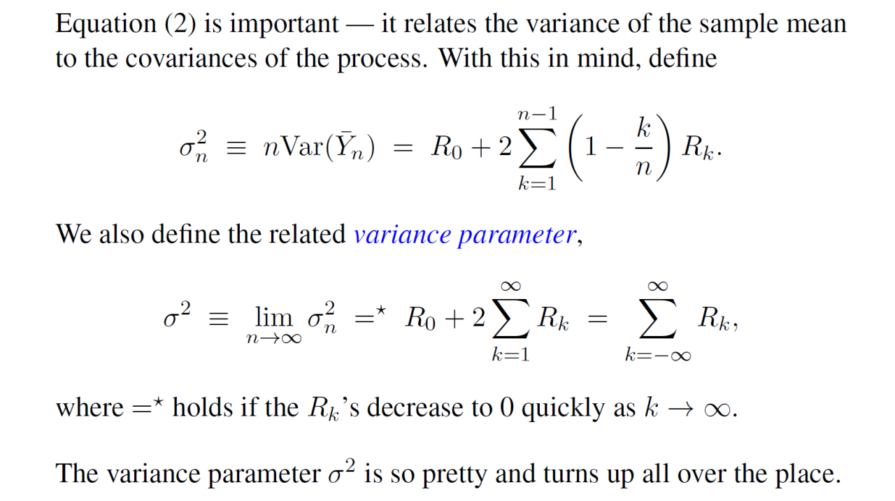 当样本之间相互独立时,参数$\sigma^2$恰好等于分布的方差。但在样本之间相互关联的情况下$\sigma^2$往往会远大于真实的方差,这会导致在计算置信区间时产生非常大的误差。