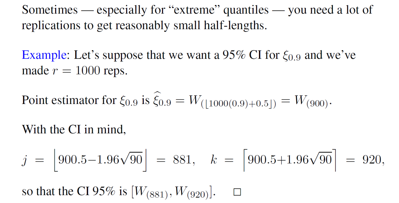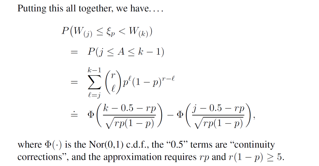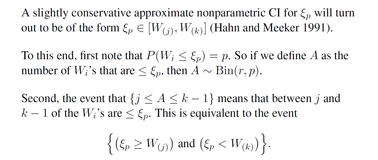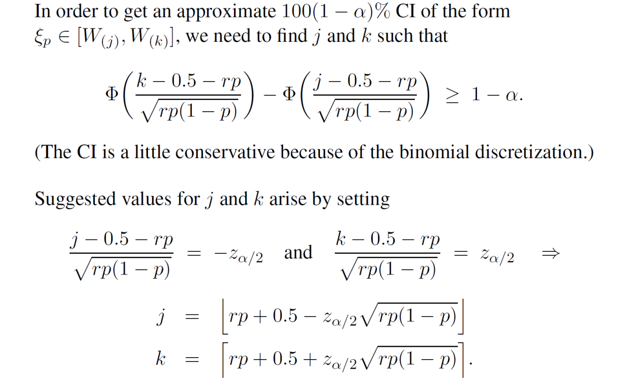 另一方面,我们还可以去估计均值以外其它统计量的置信区间。以分位数为例,我们可以推导出分位数的置信区间如下: