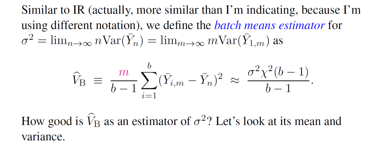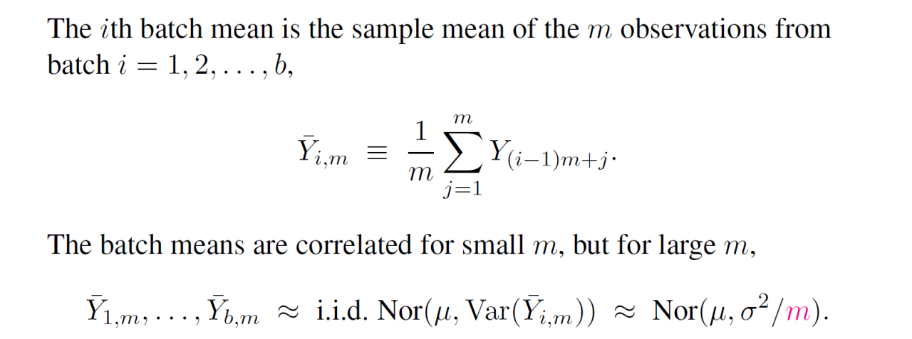 在估计观测的均值时,我们把整个观测序列划分成若干个batch。当batch的长度足够大时可以认为每个batch上的均值服从独立同分布假设。