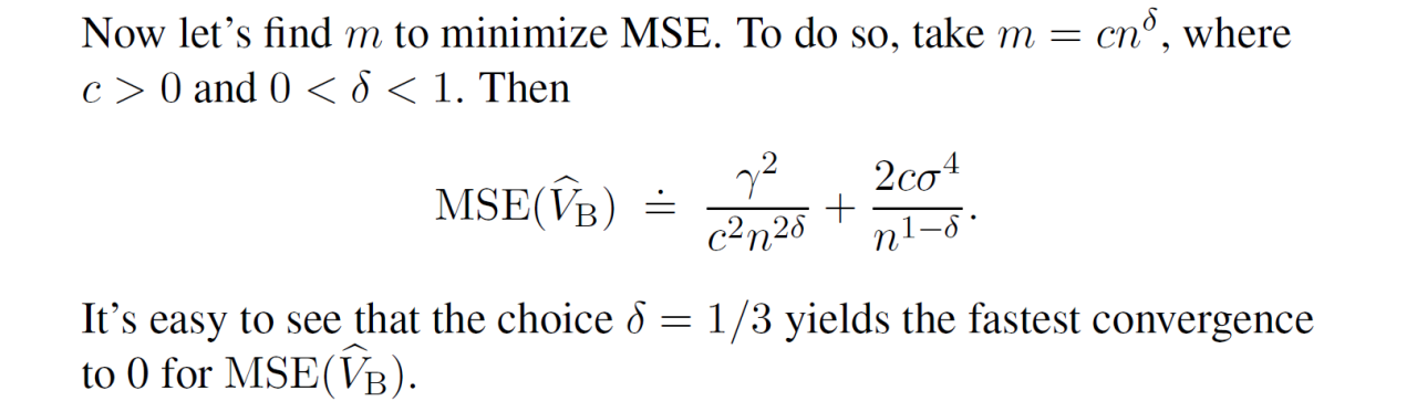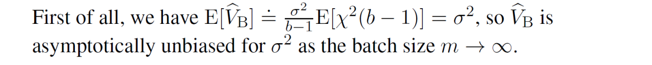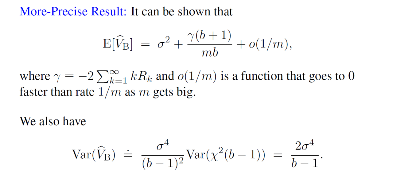 进一步的分析可以发现$\hat{V}_B$并不是一个无偏估计,而是渐进无偏的。同样地,我们可以得到$\hat{V}_B$的方差。