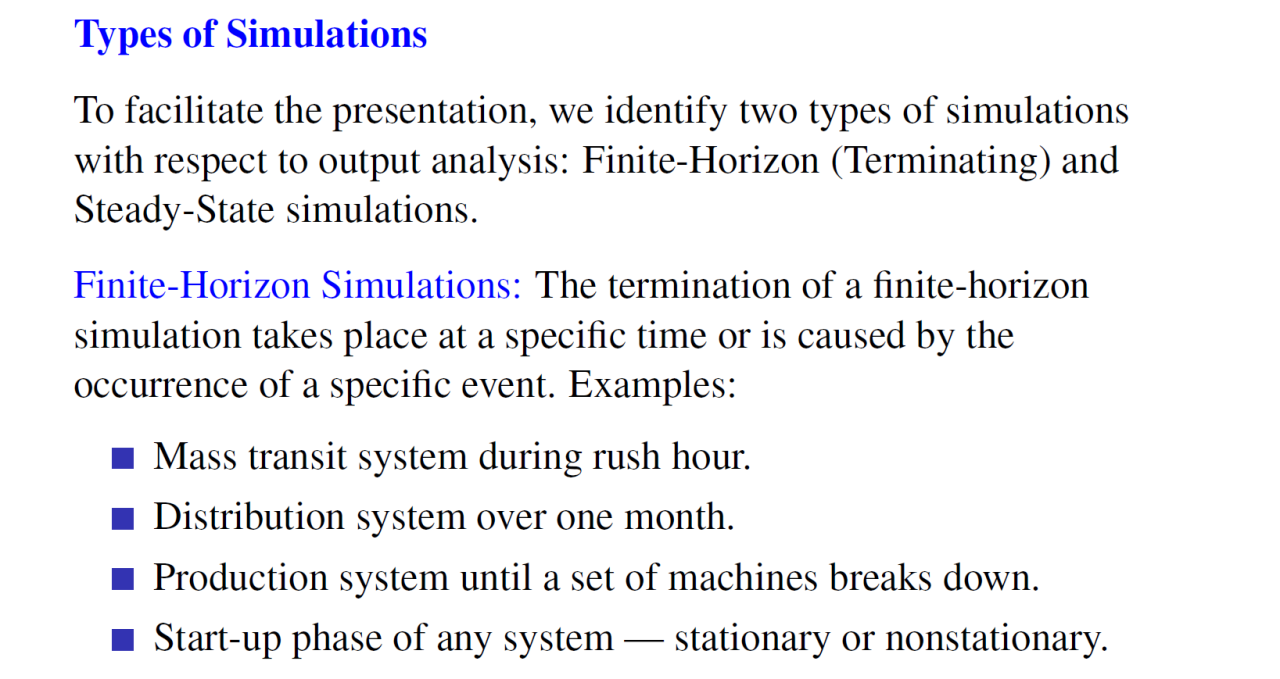 finite-horizon simulation的目的是确定系统在相对短期内的行为。