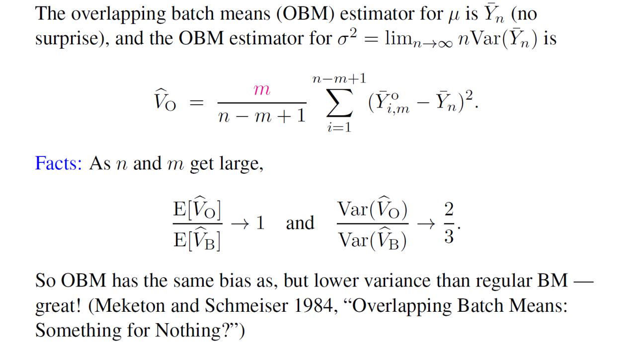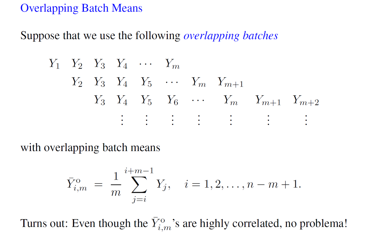 另一种估计方法是使用有重叠的batch来进行估计。可以证明当序列和batch数量比较大时,有重叠的batch会比无重叠的估计方法有更好的性能。