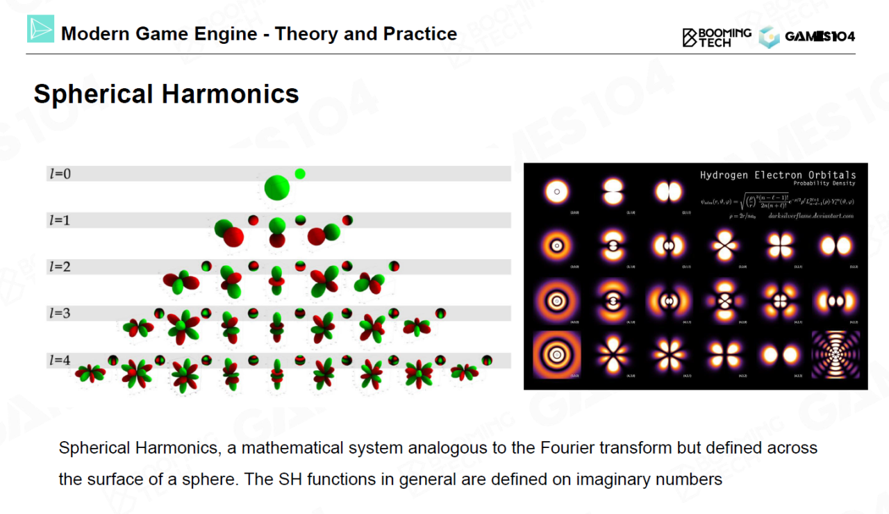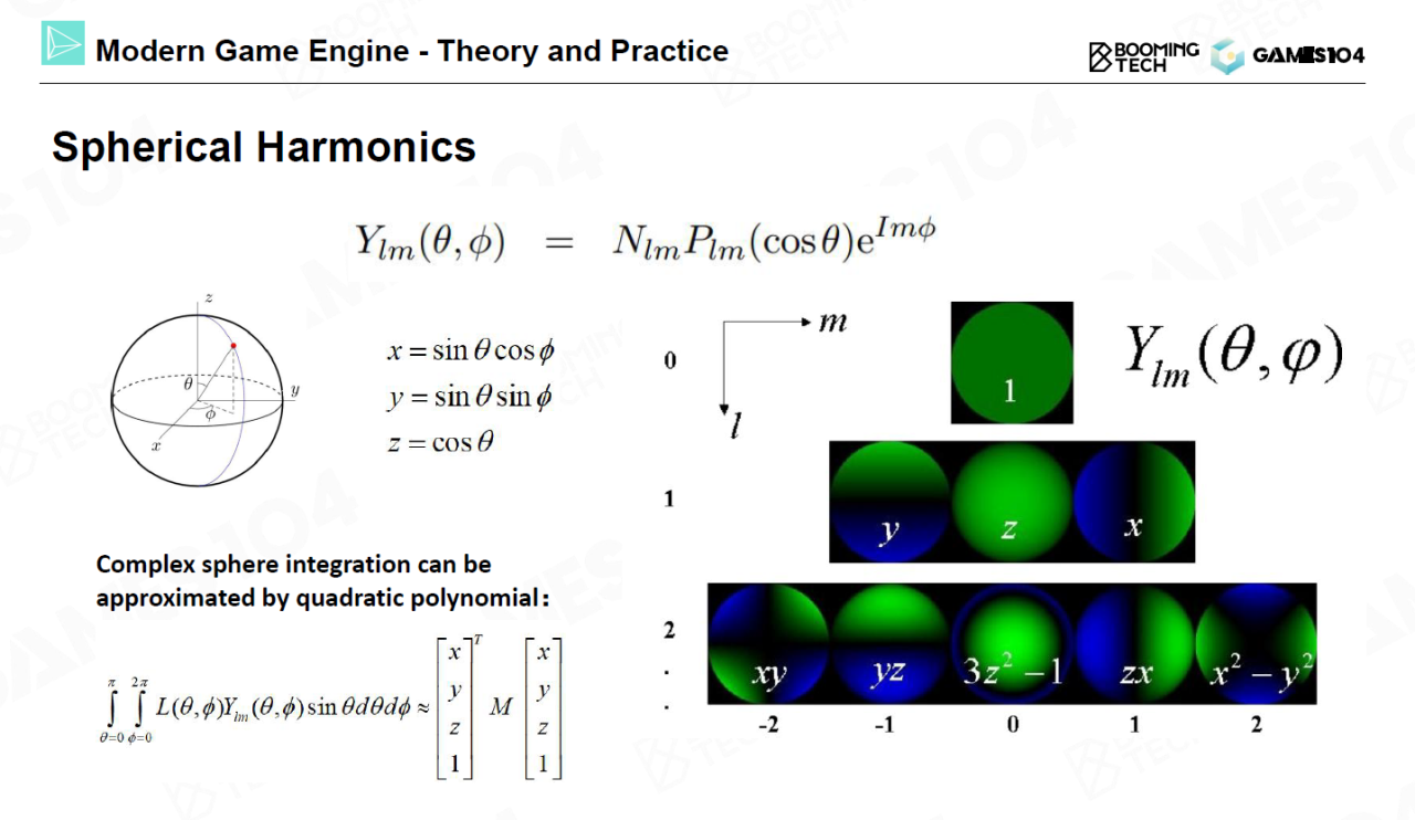 而SH可以看成是对球面上信号进行分解,可以证明任意的球面信号可以分解为无限多基函数信号的加权和,而且这些基函数是相互正交的。