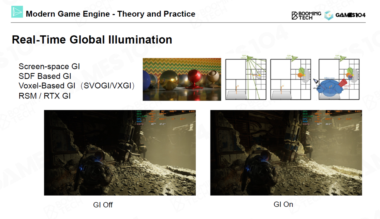 另一方面实时全局光照(real-time global illumination)也取得了很大的进步。这几年各种实时全局光照算法层出不穷,基于全局光照可以给游戏画面带来质的飞跃。