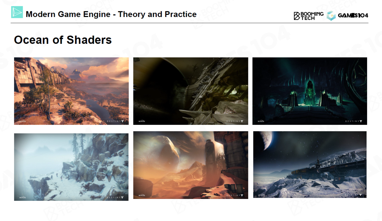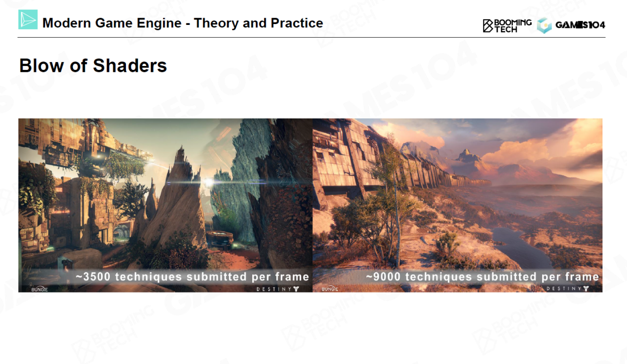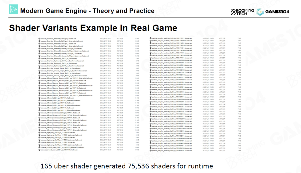 本节课最后讨论了游戏引擎中的shader管理问题。在现代3A游戏中每一帧的画面上可能都有上千个shader在运行。