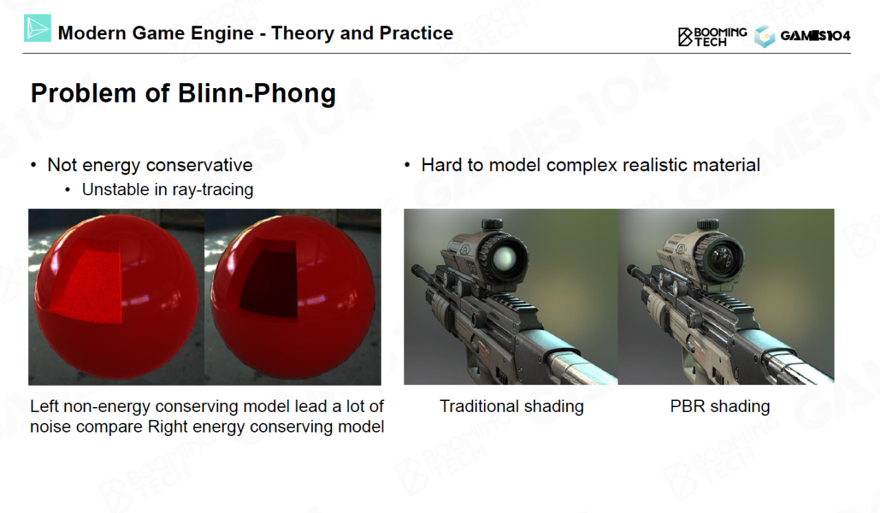 当然Blinn-Phong模型也有很多问题,比如说它不遵循能量守恒,同时它也不能描述现实世界中丰富的材质外观。