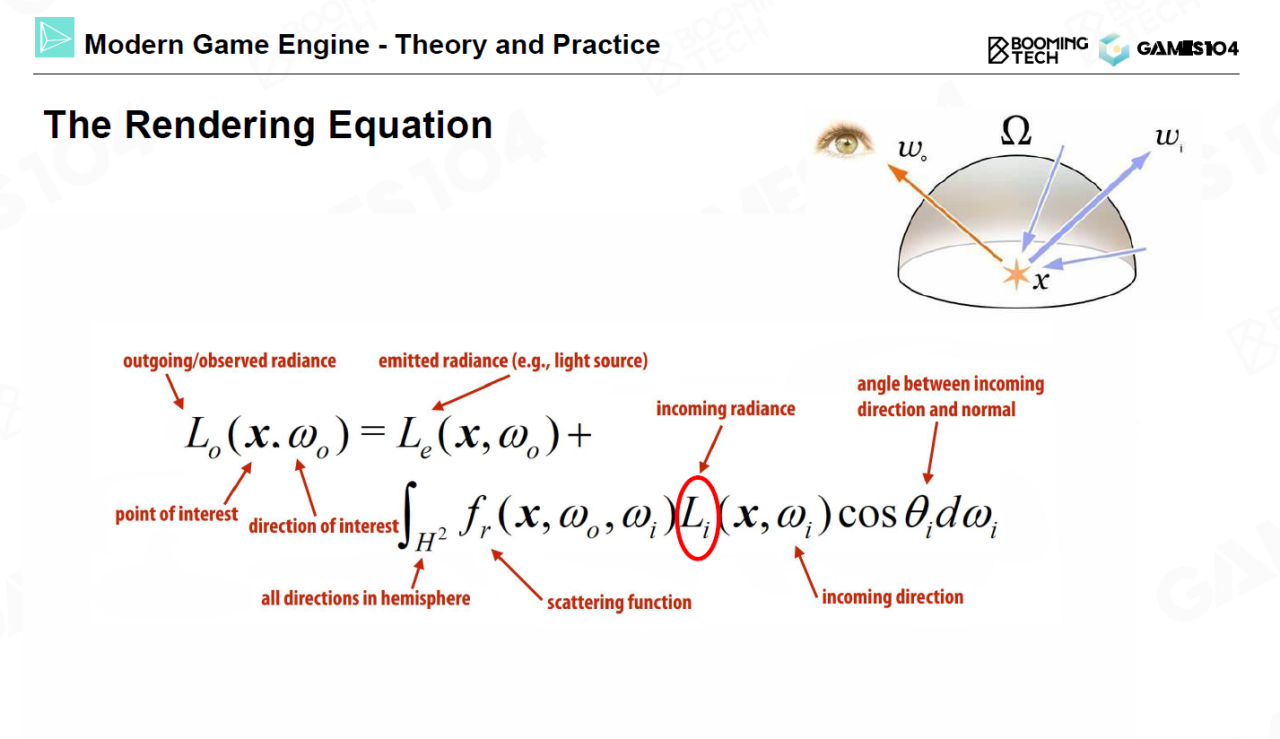 渲染的本质是求解渲染方程(the rendering equation),它由James Kajiya于1986年提出。