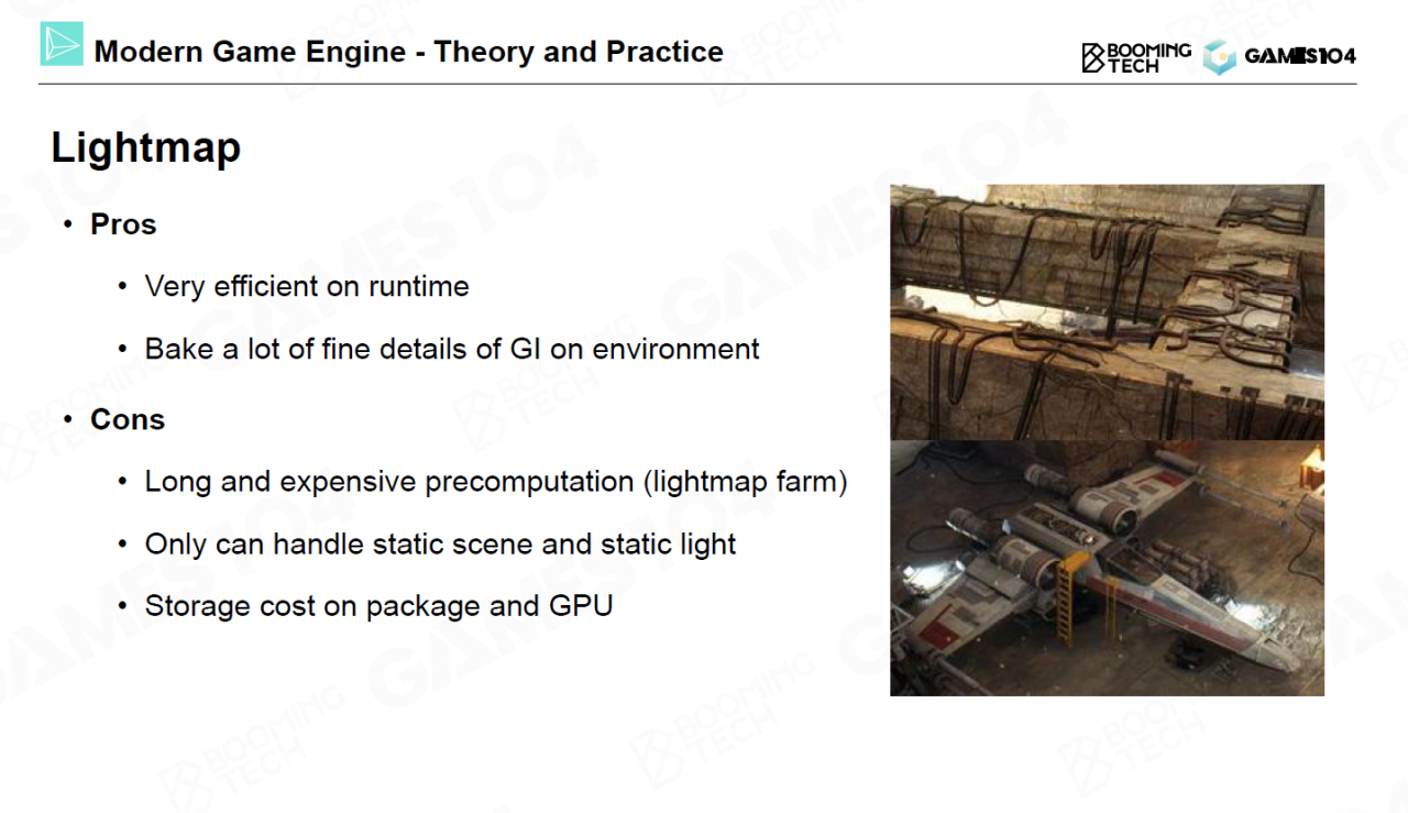 当然lightmap也有一些缺陷,比如说离线烘焙时需要很长的时间、lightmap无法考虑动态的光源、同时存储lightmap也需要非常大的存储空间。