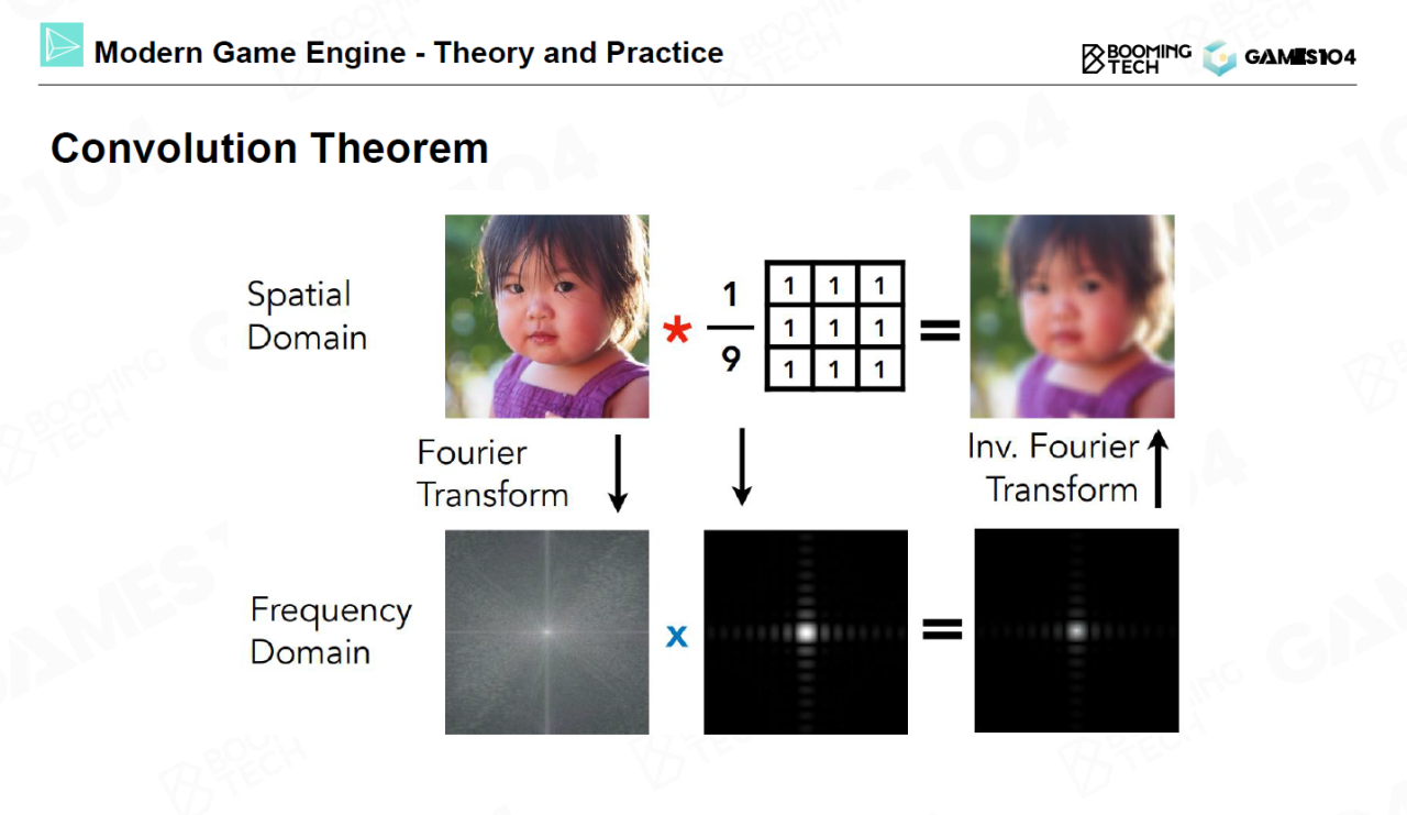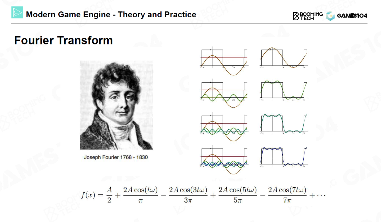 球面谐波函数(spherical harmonics, SH)是实时渲染中表示环境光照的经典方法,不过在介绍SH前我们先来回顾一下Fourier变换的相关理论。Fourier变换指出无限循环的时域信号可以分解为不同频率函数的叠加,同时时域信号的卷积等价于经过Fourier变换后频域信号的乘积。