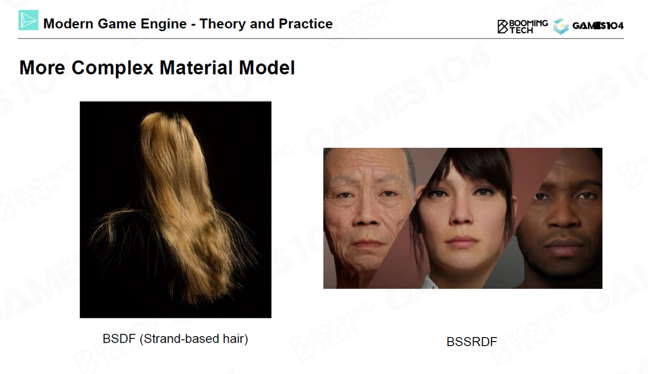 在材质渲染方面,随着geometry shader的出现人们可以获得几乎无限的几何细节。同时大量基于BSSDF的shader使得人们更准确地描述物理材质与光线的相互作用。