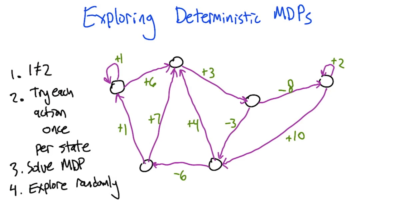 在K臂赌博机模型的基础上我们来考虑MDP。当MDP是确定性环境时我们可以在每个状态下尝试所有可能的行为并记录下奖励从而获得整个MDP的模型,然后使用求解MDP的相关算法来计算最优策略。但在很多情况下这样的计算代价是过于巨大的,因此更好的选择是在与环境进行交互时使用一些随机探索的策略来估计环境的模型。
