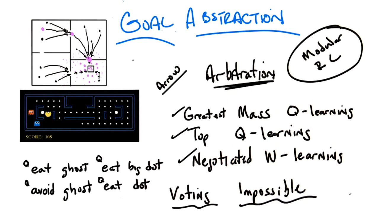 此时我们可以对不同的目标进行模块化,这样的强化学习问题称为modular RL。常用求解modular RL的算法包括greatest mass Q-learning, top Q-learning, negotiated Q-learning等。