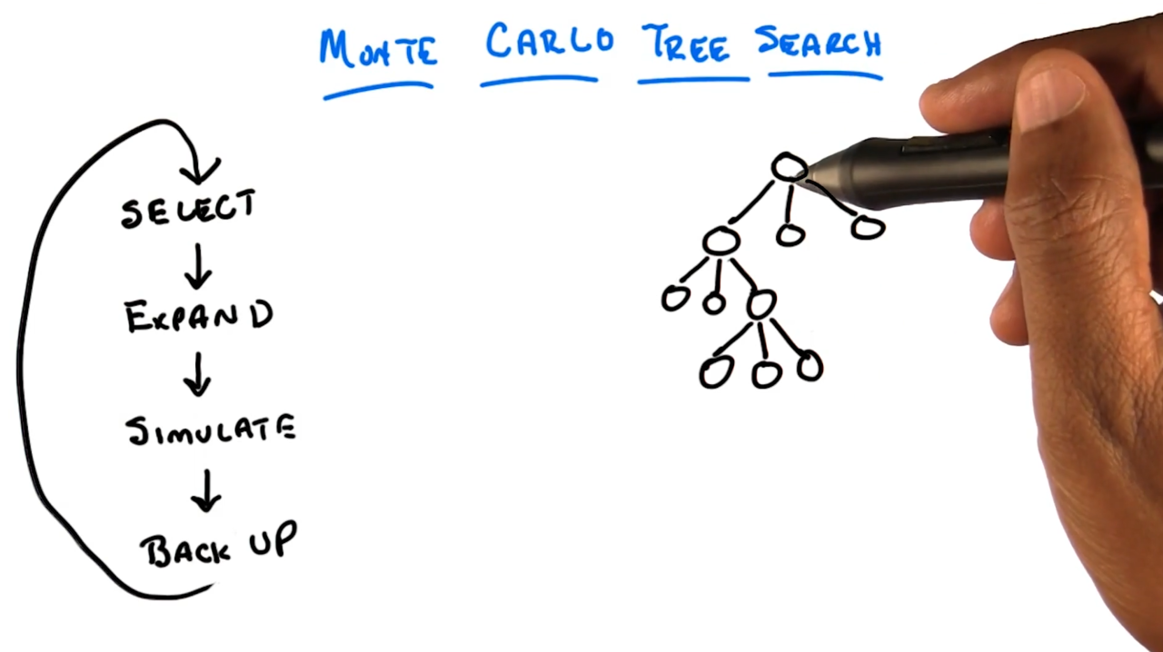 除了使用Bellman方程来认识MDP外,我们还可以把MDP理解为一个搜索(search)问题。此时智能体所处的状态可以表示为一个节点,每当它执行某个行为时就会转移到下一个节点上。我们对智能体的历史行为进行展开就可以树这种数据结构来描述智能体的行为,同样地智能体可以利用子节点的价值来选择当前的最优行为。这样的算法称为Monte-Carlo树搜索(Monte-Carlo tree search, MCTS)。