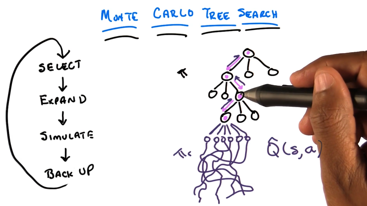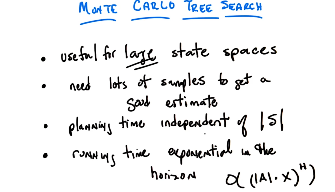 由于整个MDP对应的状态空间往往是非常巨大的,在进行搜索时往往不能对所有可能的状态进行遍历。此时可以使用采样的方法抽样出一些行为来继续向下搜索。而在对状态进行估值时也可以使用类似的采样方法采样出一系列轨迹,然后对这些轨迹上的奖励求平均来估计该状态的价值函数,最后自下而上对节点价值进行更新即可。