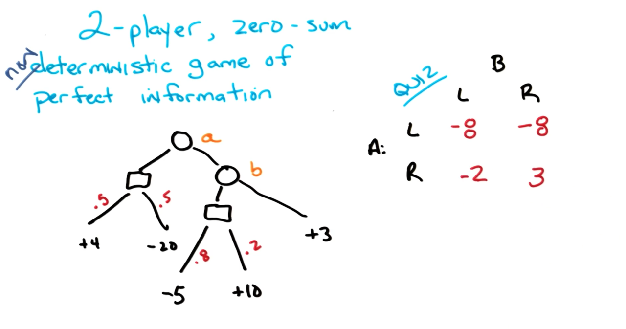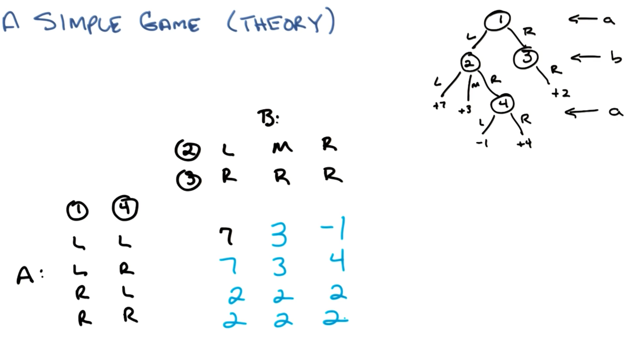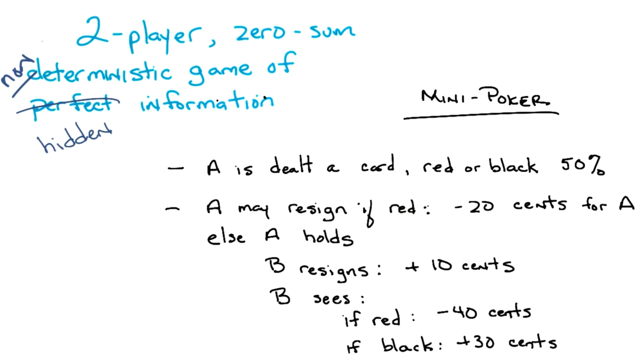 得到回报矩阵后就可以使用前面介绍过的minimax算法来计算最优策略。