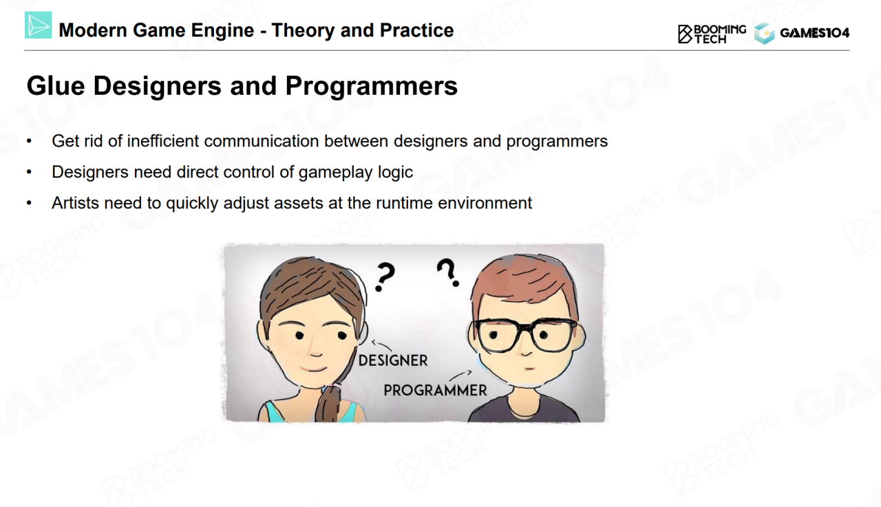 除此之外游戏引擎面对的用户往往是设计师而不是程序员,对于设计师来说直接使用编程语言来设计游戏可能是过于复杂的。