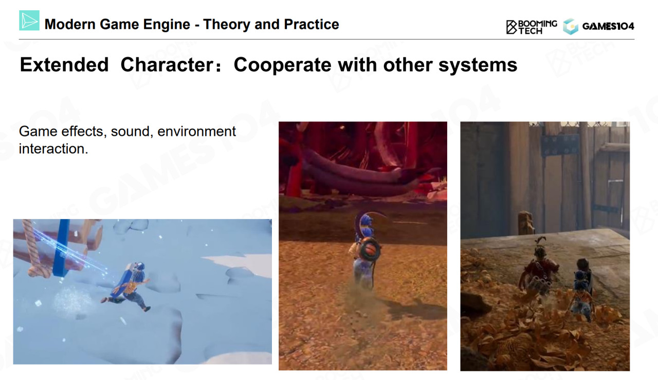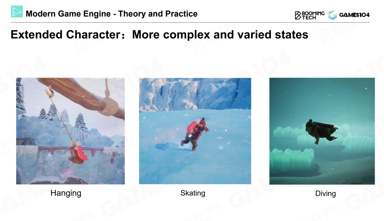 在现代游戏中角色的运动往往涉及大量不同的动画和状态改变,我们需要非常多的细节才能设计出符合人认知的角色运动。同时在游戏世界中角色还需要和环境中的各种元素进行互动,往往需要结合游戏引擎其它系统进行设计。