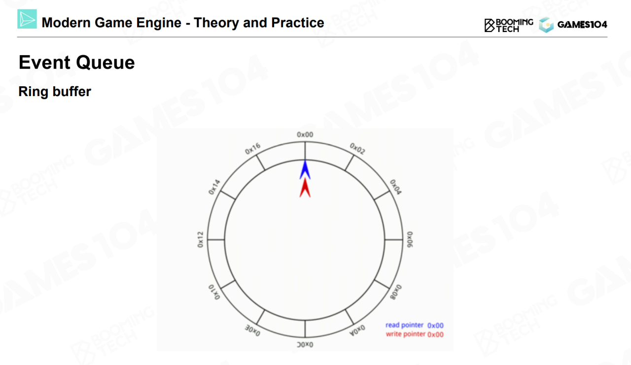 event queue一般会使用ring buffer这样的数据结构来实现,这样可以重用一块统一的内存空间来提升效率。