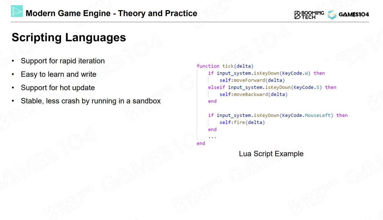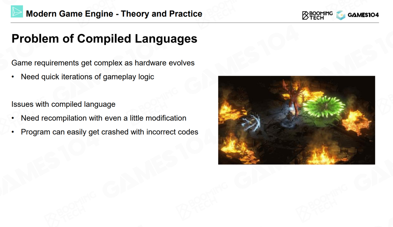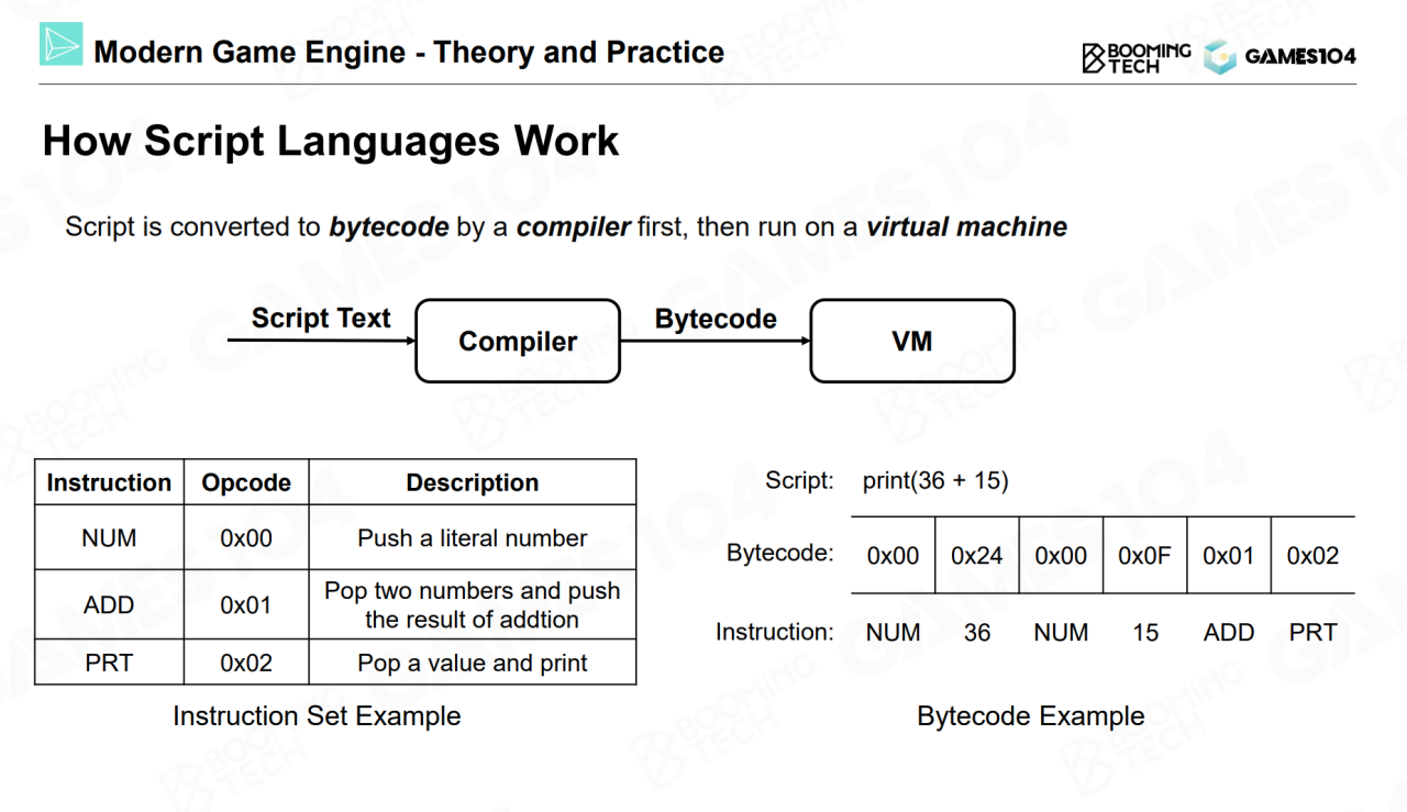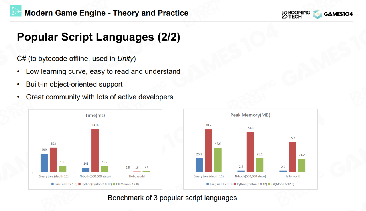因此在现代游戏引擎中往往会使用脚本语言来实现游戏的开发工作,它的优势在于它可以直接在虚拟机上运行。
