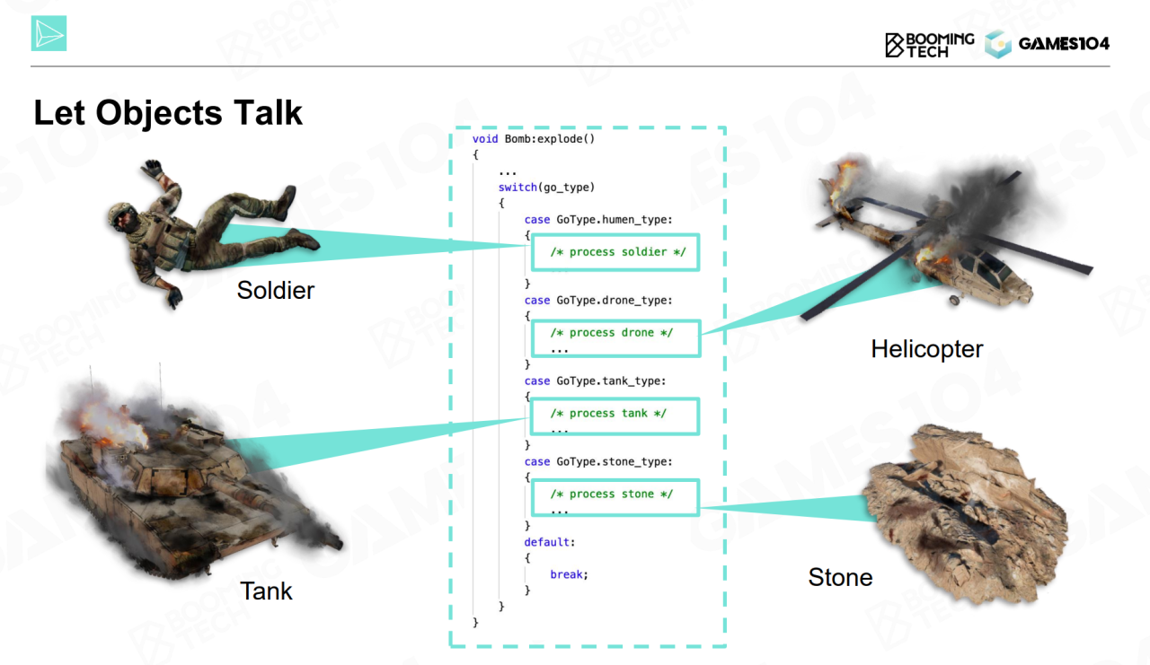玩法系统的核心是事件机制(event mechanism),在游戏世界中不同类型的GO会通过事件/消息的方式进行通信从而驱动游戏世界的运行。