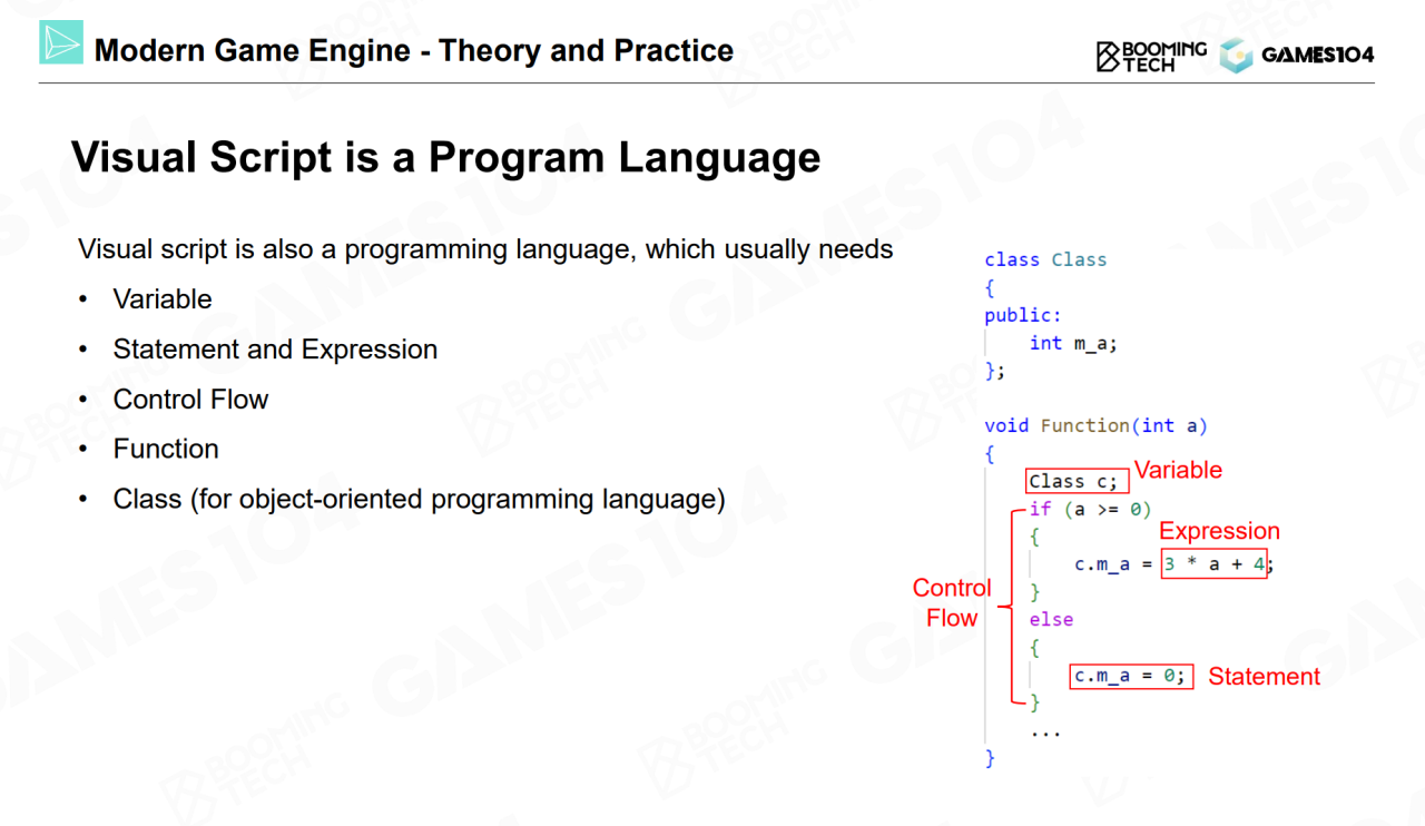 当然可视化脚本本身也是一种编程语言,它需要实现相应的变量、语句、表达式、控制流程、函数甚至面向对象编程等功能。