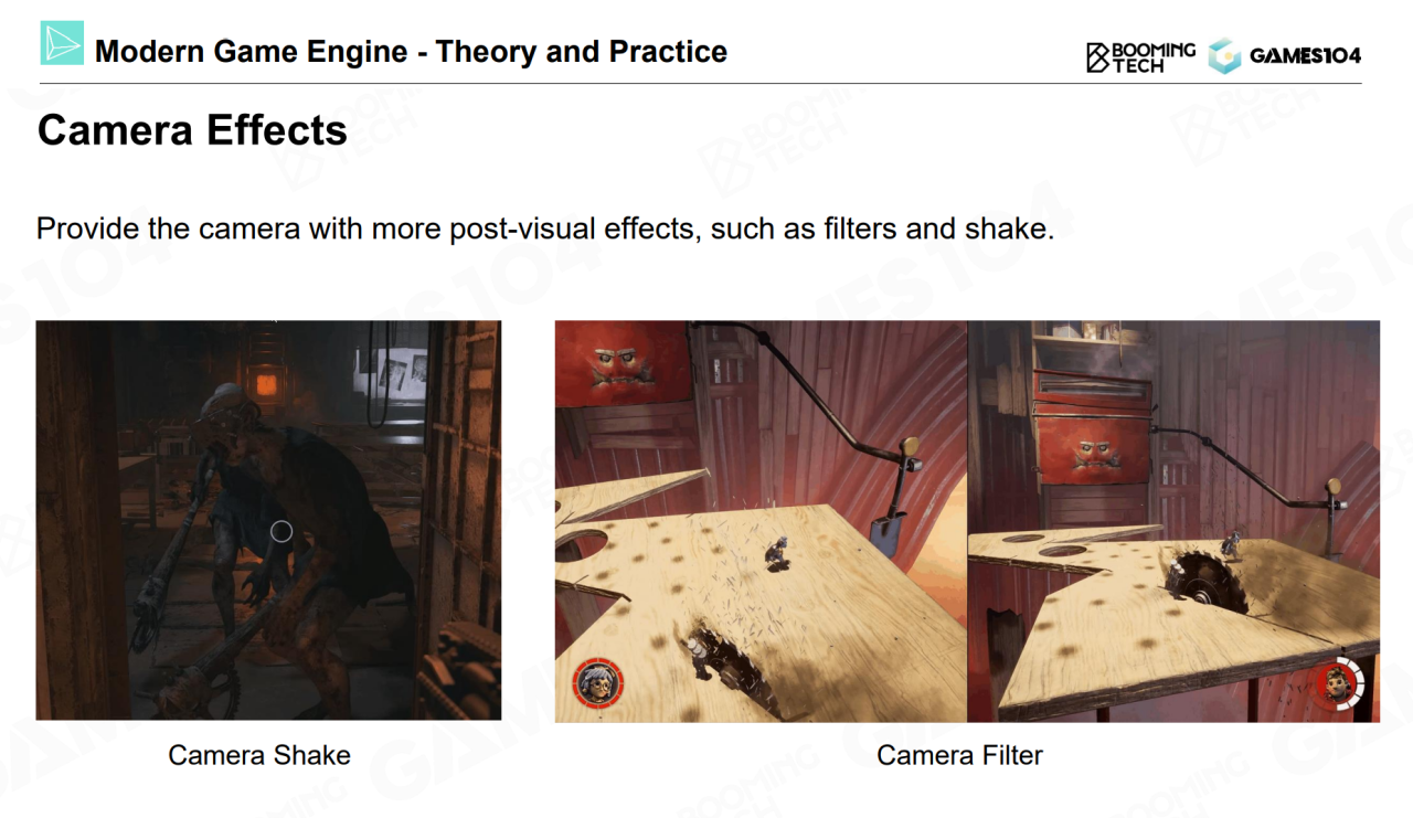 同时镜头系统也需要考虑各种相机特效的实现,包括镜头抖动、动态模糊等。