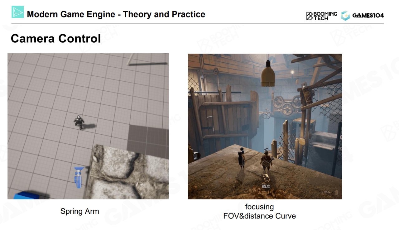 在游戏场景中最常见的情况是相机要绑定在玩家控制的角色身上,随着角色的运动一起运动。同时我们还需要保证相机在运动的过程中不要出现穿墙等各种问题。
