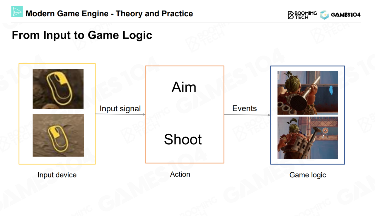 来自控制器的信号通过控制系统会转换成游戏可以识别的输入,然后通过事件机制来控制角色。