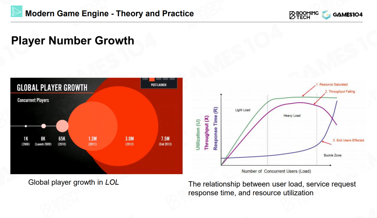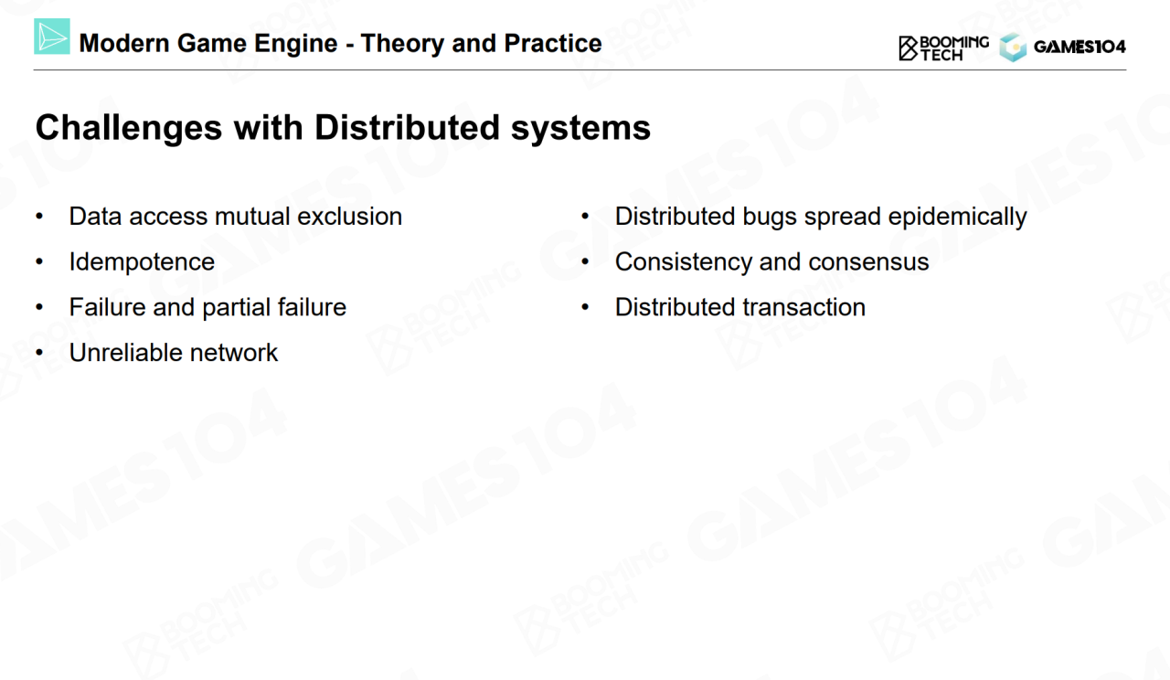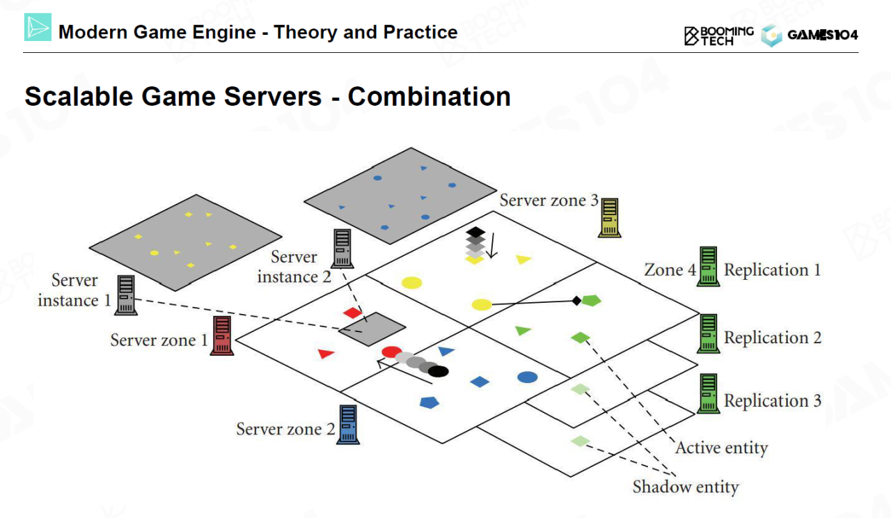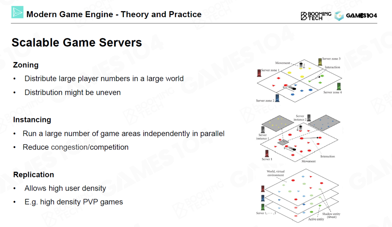 随着玩家数量的增长,在单个服务器上支撑所有玩家进行游玩是几乎不可能的。在这种情况下就需要使用分布式系统(distributed system)来提供游戏服务。