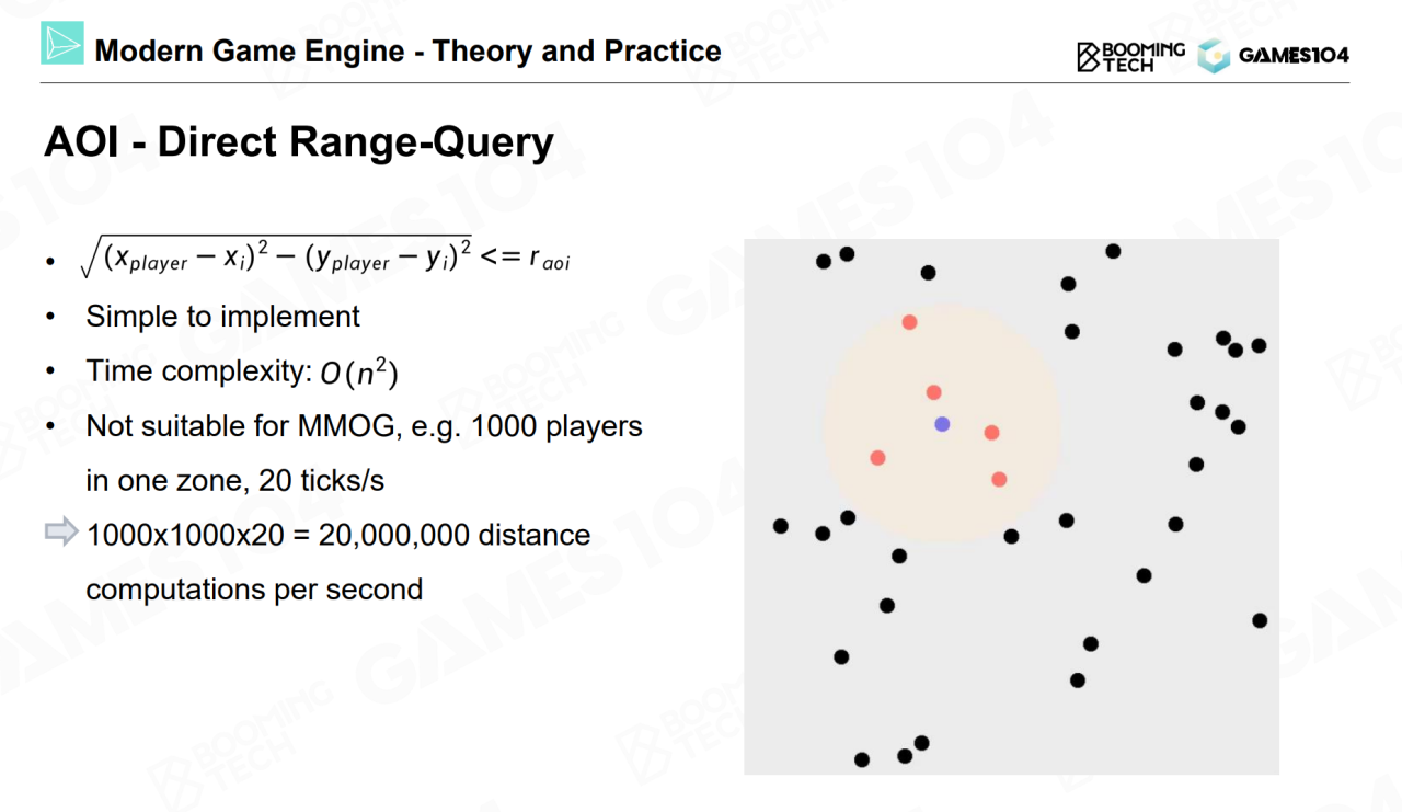 AOI最简单的实现方法是利用一个半径来查询附近信息。